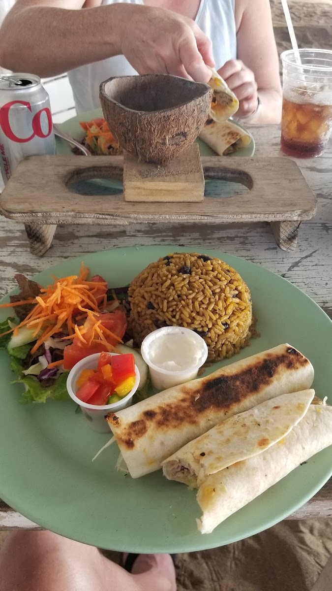 First visit here, though I had walked by on a previous trip. Fantastic spot on South Friars Bay Beach with a great, chill atmosphere. It's also a much smaller place than the club on the other end which I imagine can get quite busy on cruise days. Loungers and shade have been upgraded on part of the beach for extra confort as compared to the last time when I walked by. This is a big plus. Easier to stay covered while the sun moves during the day. For lunch we ordered the conch fritters with fries as well as the jerk pork meal. Both were great! Really glad we started our trip here!